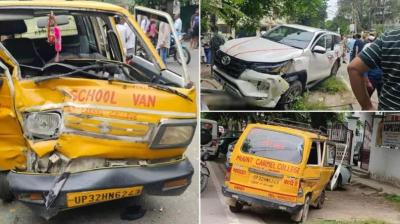 लखनऊ हादसा: SUV और स्कूली वैन की जोरदार भिड़ंत, घायल मासूमों को तुरंत भेजा गया अस्पताल