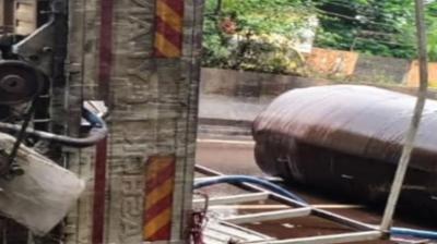 रायपुर-नागपुर हाईवे पर टैंकर हादसा, टायर फटने से पलटा केमिकल ट्रक