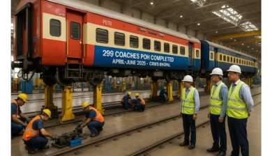 भोपाल। पश्चिम मध्य रेलवे के सवारी डिब्बा पुर्ननिर्माण कारखाना (CRWS), भोपाल ने चालू वित्तीय वर्ष 2025-26 के प्रथम तीन माह (अप्रैल से जून 2025) के दौरान कुल 299 कोचों का...