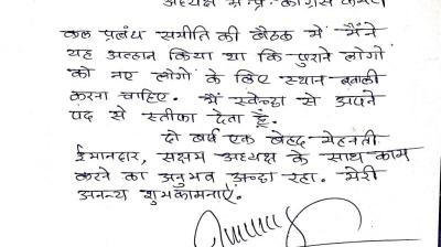 कांग्रेस प्रदेश अध्यक्ष जीतू पटवारी को भेजा इस्तीफा