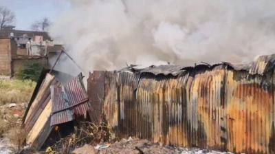 प्लास्टिक फैक्ट्री में लगी भीषण आग, आसमान में दूर से दिखा धुएं का गुबार, 5 टैंकरों ने बुझाई आग