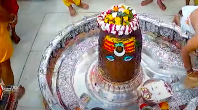 महाकालेश्वर मंदिर में अद्भुत नज़ारा, भस्म आरती के दौरान बाबा महाकाल मस्तक पर शिवलिंग धारण किए दिखे