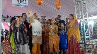 सीएम हेलीकॉप्टर से बरसाते रहे पुष्प, भक्त झूम उठे