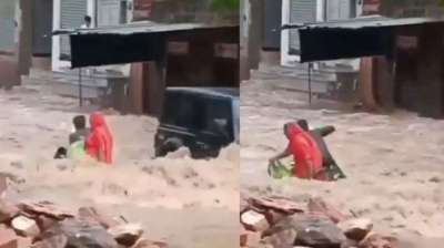 पुलिया पर उमड़ा तेज बहाव, बुजुर्ग दंपति और बेटा बाल-बाल बचे