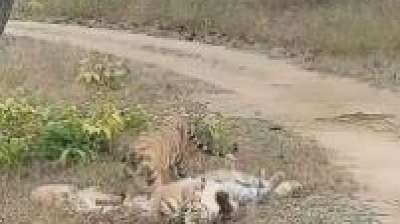 सिद्धी के जंगल से आई खुशखबरी, बाघिन 'मौसी' अपने शावकों संग दिखी ममता लुटाते