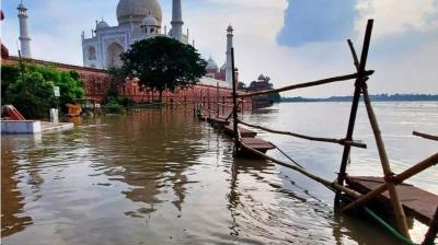 आगरा में रिकॉर्ड तोड़ बारिश और यमुना का उफान, ‘ताजमहल’ के नज़दीक तक पहुंचा पानी