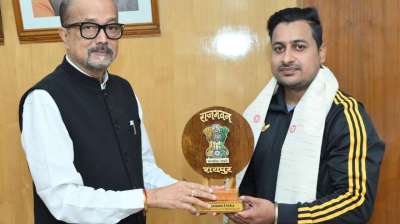 राज्यपाल डेका से पैरा एशिया कप के गोल्ड मेडल विजेता झा ने सौजन्य भेंट की