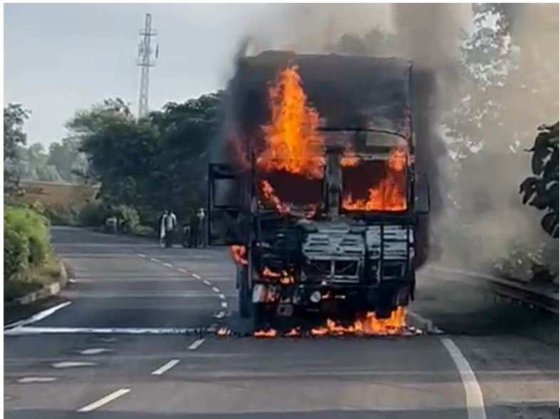 आग लगने का लाइव वीडियो मौके पर मौजूद किसी व्यक्ति ने बना लिया, जो तेजी से सोशल मीडिया पर वायरल हो रहा है। वीडियो में देखा जा सकता है कि किस तरह ट्रक धू-धू कर जल रहा है और आसपास धुआं फैल गया है। ड्राइवर और क्लीनर की जान तो बच गई, लेकिन लाखों का ट्रक और माल खाक हो गया।