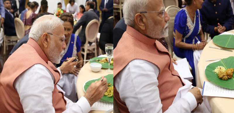 त्रिनिदाद में पीएम मोदी को सोहारी पत्ते पर परोसा गया पारंपरिक भोजन